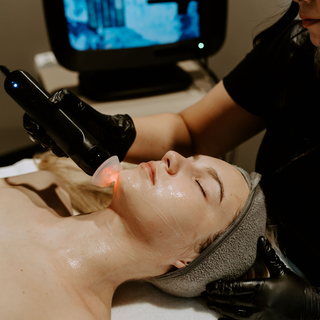 The treatment finishes with a sculpting lymphatic massage to reduce inflammation, calm redness, and improve overall tone. This final step enhances blood flow and collagen stimulation while offering a relaxing massage.
