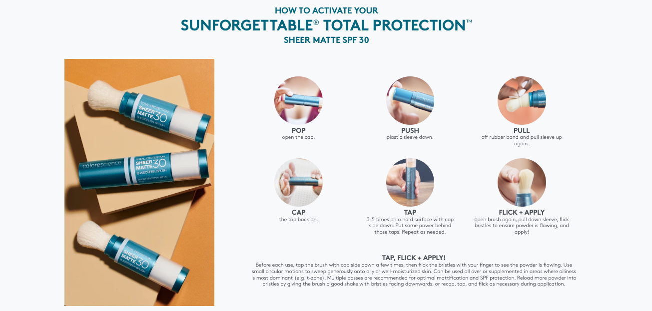 Designed with Enviroscreen® Technology, Colorescience Sunforgettable® brushes provide all-mineral actives environmental protection for oily and blemish-prone skin in one convenient, on-the-go application.